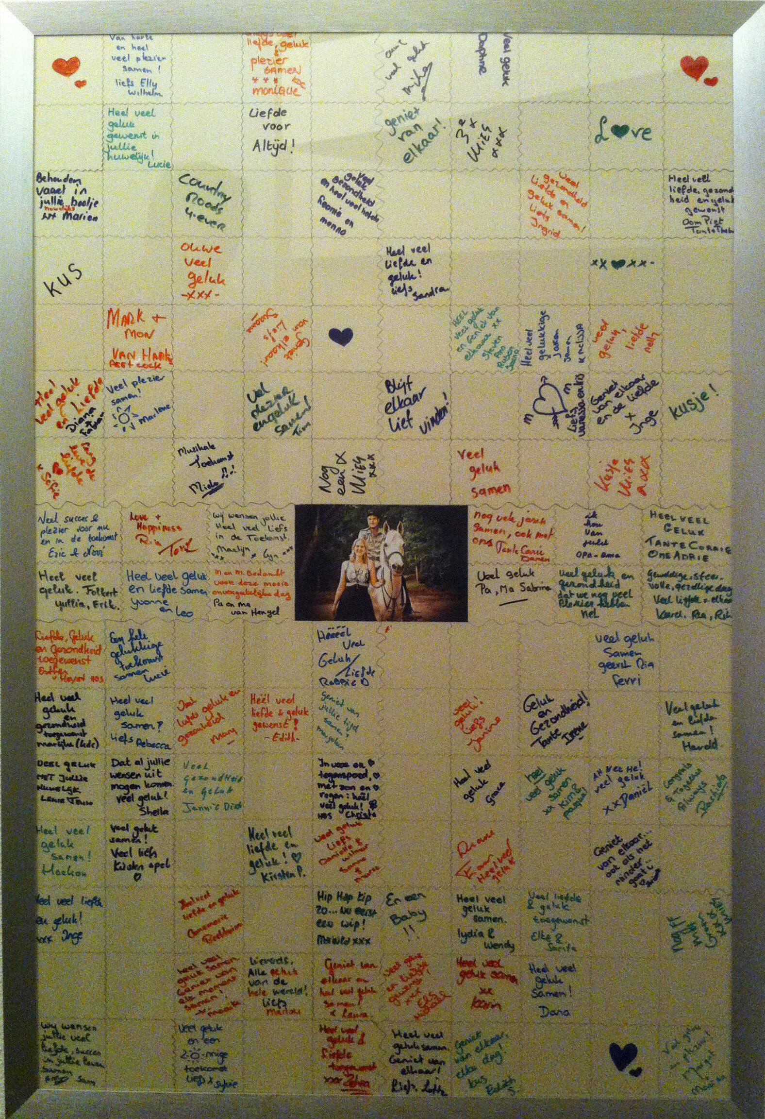 Ander idee: een puzzel als receptie-boek Er is een keuze uit diverse genres zoals Pieck, Rockwell, Mucha, Mordillo, Patterson, Poortvliet, Larssen Corneille, maar ook stripprenten. U kunt echter ook zelf prenten aanleveren waar dan een puzzel van gezaagd wordt. De grootte van de puzzel is afhankelijk van de prent. De kleinste puzzels hebben de grootte van een postkaart en de maximale vorm is ongeveer 40 x 40 cm. Nog groter kan wel, maar wordt dan in delen gezaagd. De puzzel kan van zeer moeilijk tot vrij gemakkelijk gezaagd worden en op verschillende diktes MDF of triplex (van 3 mm tot 10 mm). De prijs van de puzzel wordt bepaald door een aantal factoren zoals, namelijk: 1. de